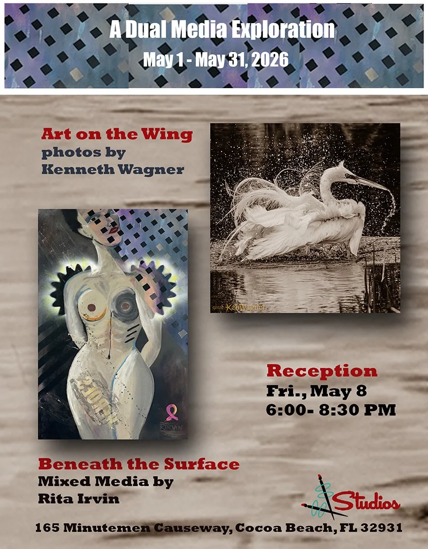 Meet Sonia and see her incredible work at her reception. Witness firsthand how Sonia’s “easy” lines create her excellent compositions. The Studios is located at 65 Minutemen Causeway in downtown Cocoa Beach. See you there!